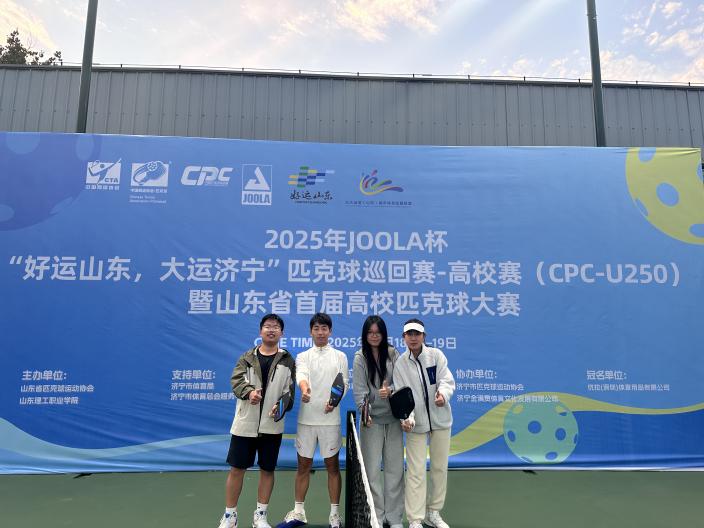 金秋十月,激情绽放。10 月 19 日,2025 年 “JOOLA 杯”“好运山东大运济宁” 匹克球巡回赛 — 高校赛 (CPC-U250) 暨山东省首届高校匹克球大赛在济宁圆满落幕。本次赛事由山东省匹克球运动协会与山东理工职业学院联合主办,作为山东省高校领域首次举办的专业匹克球赛事,吸引了全省多所高校的顶尖选手同台竞技,共有来自山东省的16支高校代表队参加。由体育学部副主任兼体育科学学院副院长李思民教授担任领队,朱腾旗老师担任教练员的曲阜师范大学代表队不负众望,凭借精湛技艺与顽强拼搏的精神,在多个项目中脱颖而出,斩获累累硕果。![]()